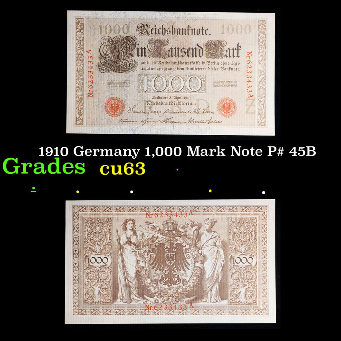 1910 Germany 1,000 Mark Note P# 45B Grades Select CU.