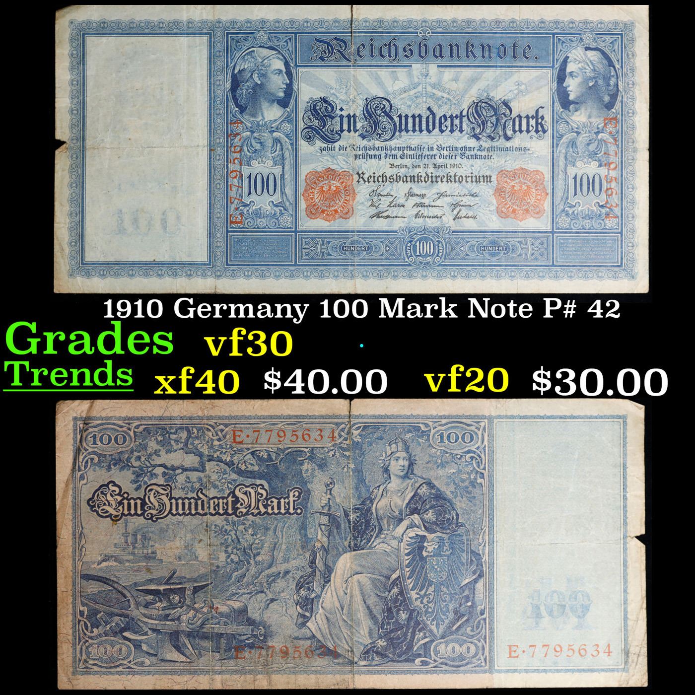 1910 Germany 100 Mark Note P# 42 Grades vf++.