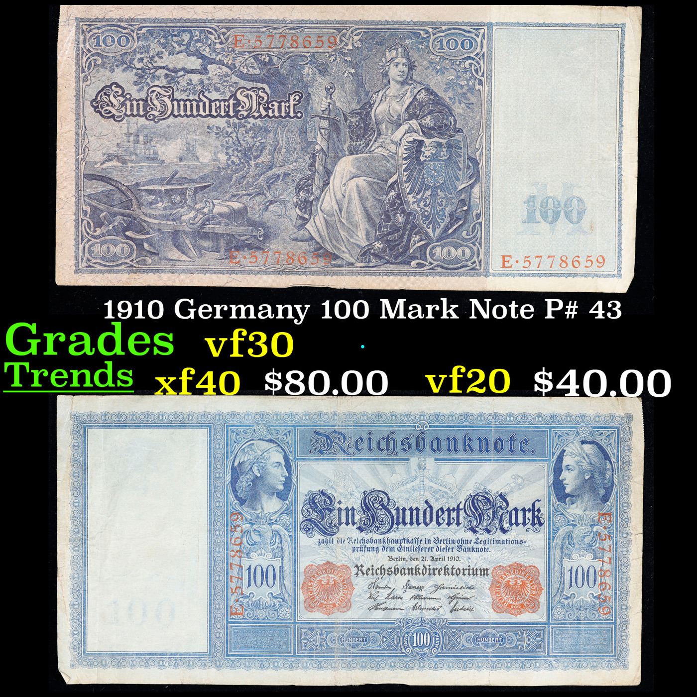 1910 Germany 100 Mark Note P# 43 Grades vf++.
