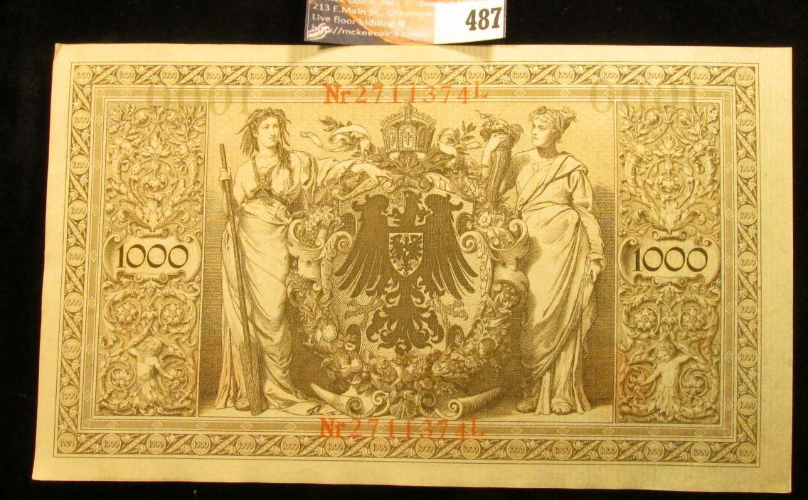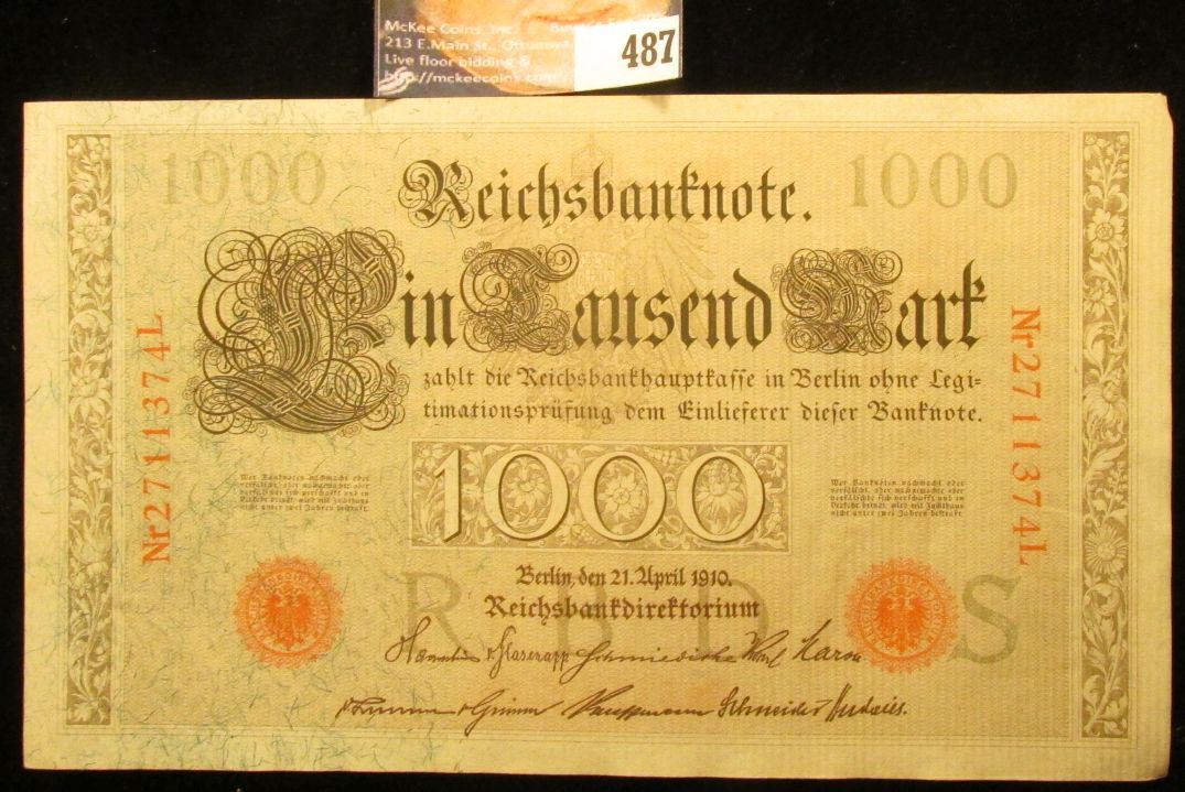 1910 Germany 1000 Mark Banknote, near Crisp Uncirculated.