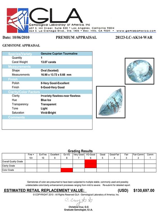 In the event that an item is listed as having an "Appraisal Estimate", this represents WAR's in-house estimate of what the item would appraise for at Gem Labs of America (GLA), Beverly Hills, CA. Actual appraisal of the item at GLA is the responsibility of the Bidder, however WAR may assist, at its discretion, in related logistics. WAR does provide the following guaranty (the "WAR 5% Loose Gem Guaranty") relative to Appraisal Estimate values of LOOSE GEMS: In the event that the GLA appraised value is not such an amount that the Bidder's winning bid is five percent (5%) or less of the GLA appraised value, then WAR, in it's discretion, will either refund such amount of the Bidder's winning bid and related charges so that the winning bid equals five percent (5%) of the GLA appraised value, or, instead issue a full refund on the item and reimburse the Bidder for the GLA appraisal fees. The Bidder may also opt to retain the item, in which case the WAR 5% Gem Guaranty shall not apply relative to the particular item.