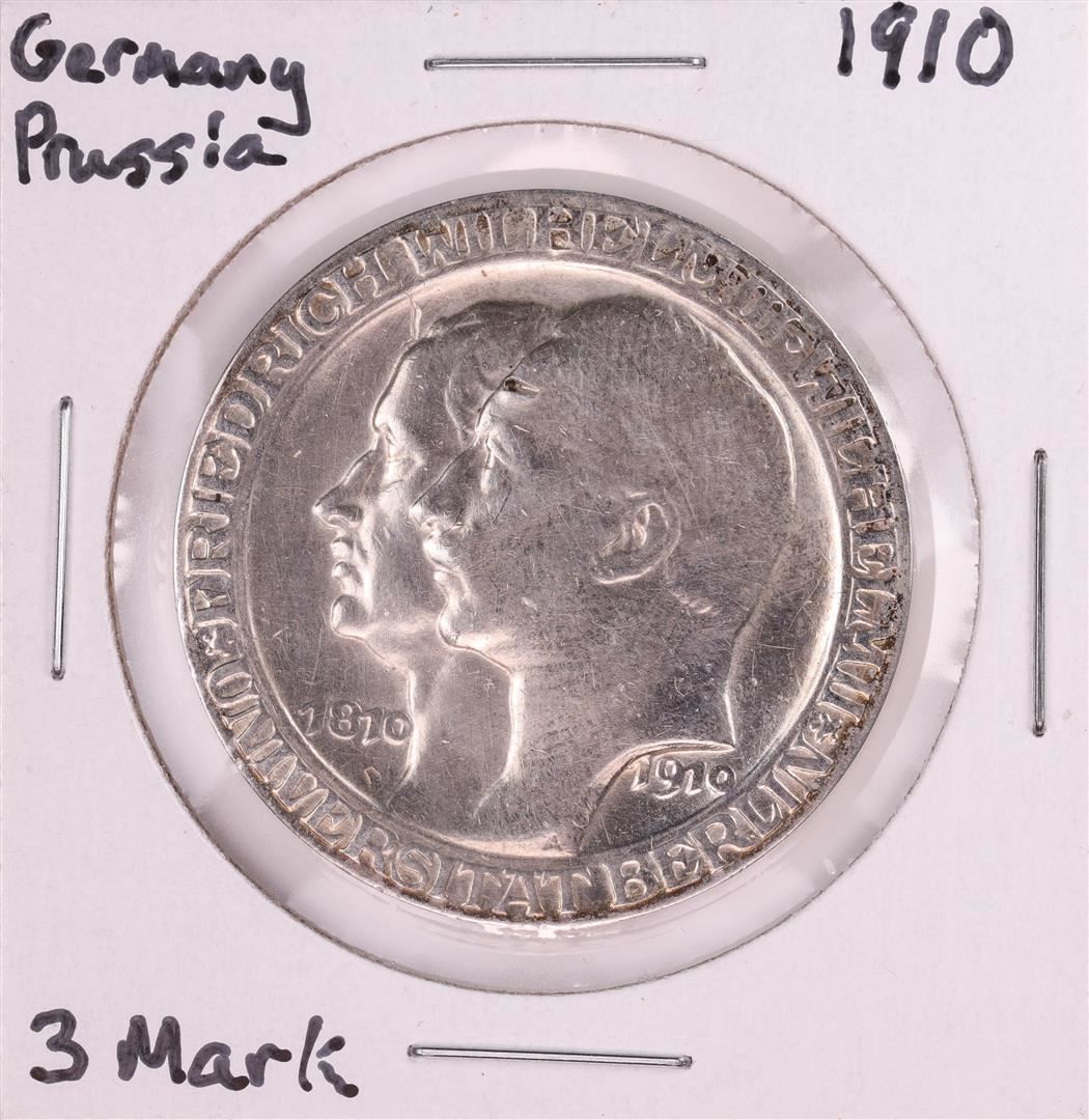 One 1910 Germany Prussia 3 Mark Silver Coin.