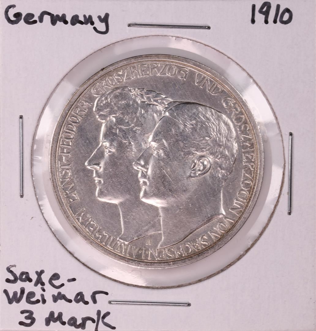 One 1910 Germany Saxe-Weimar 3 Mark Silver Coin.