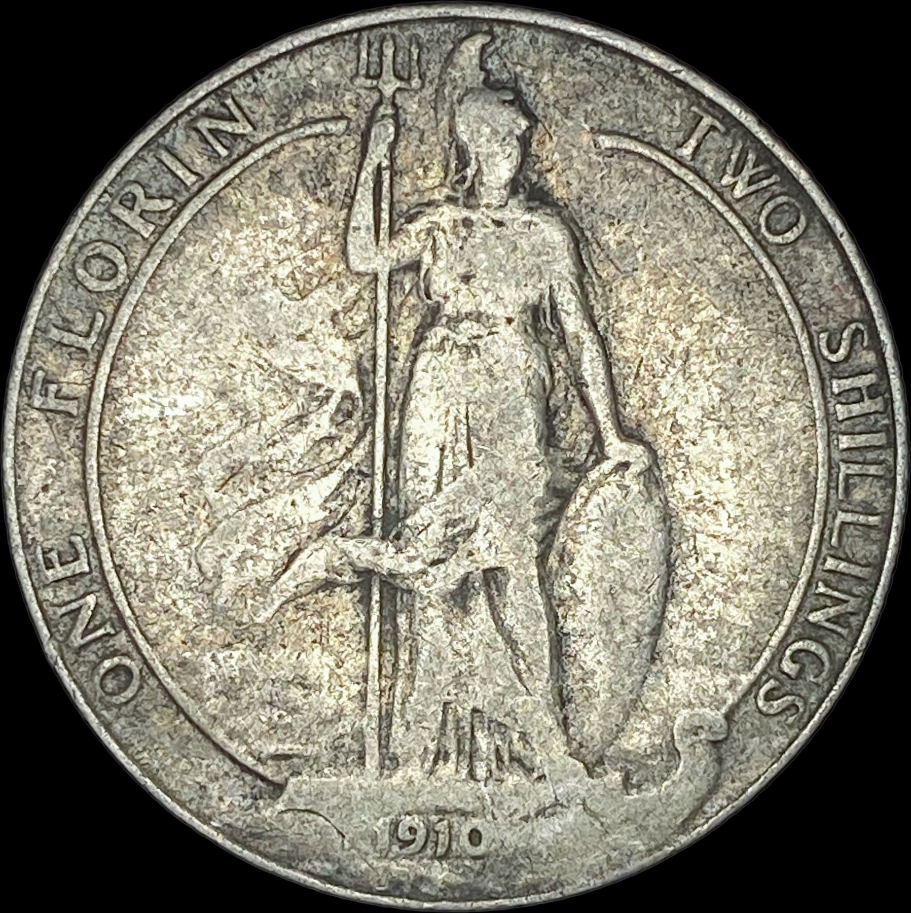 1910 Great Britain Silver Florin NEARLY UNCIRCULATED
