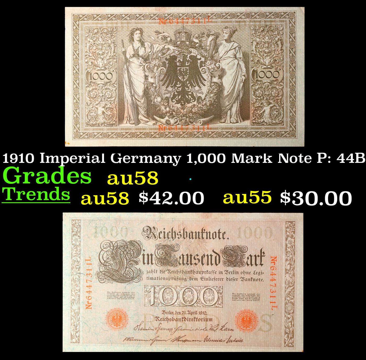 1910 Imperial Germany 1,000 Mark Note P: 44B Grades Choice AU/BU Slider