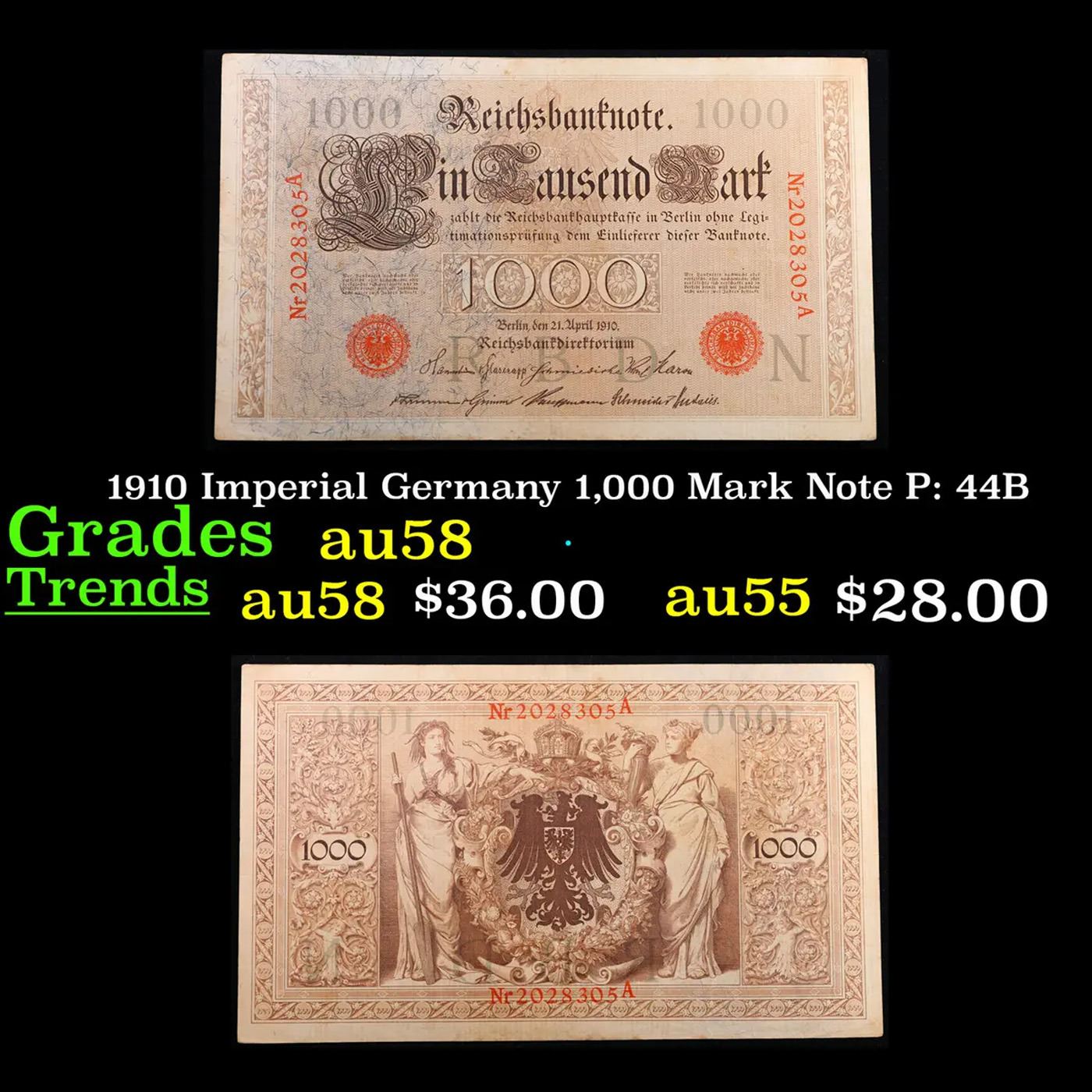 1910 Imperial Germany 1,000 Mark Note P: 44B Grades Choice AU/BU Slider