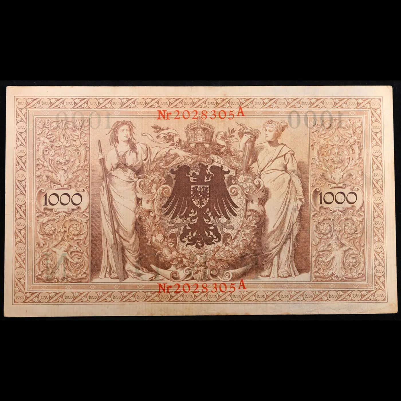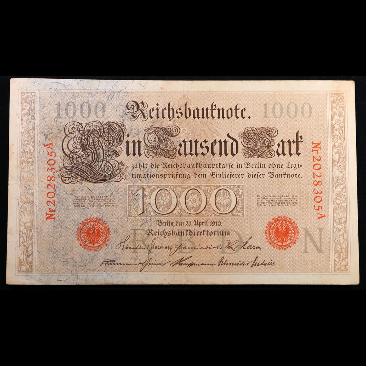 1910 Imperial Germany 1,000 Mark Note P: 44B Grades Choice AU/BU Slider. From 1871 to 1914 the German Mark was known as the "Goldmark", as it was on the gold standard. During WWI, like most nations, Germany removed the gold backing and ceased circulation of gold coins. The Goldmark was the culmination of years of effort put into unifying the currency of Germany.