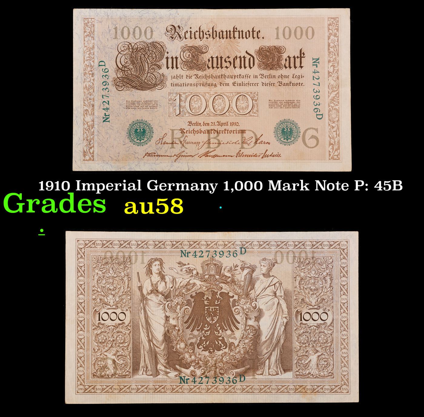 1910 Imperial Germany 1,000 Mark Note P: 45B Grades Choice AU/BU Slider