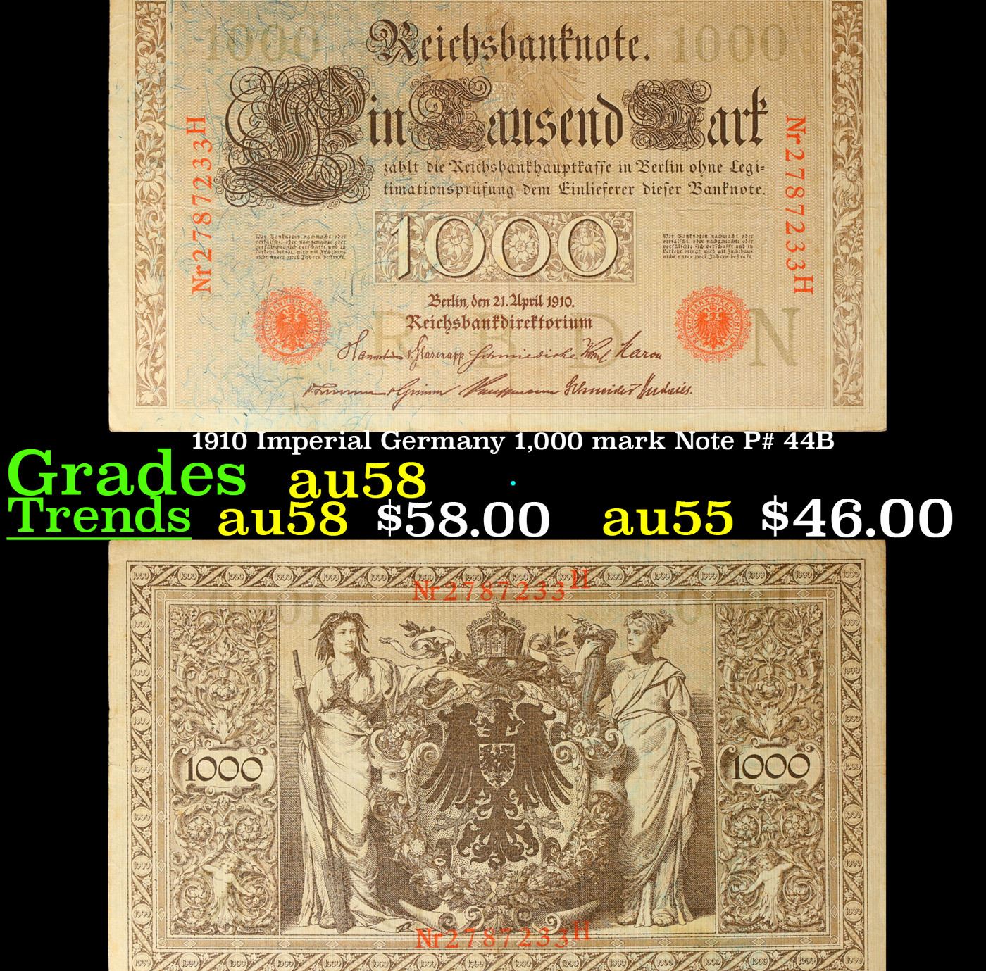 1910 Imperial Germany 1,000 mark Note P# 44B Grades Choice AU/BU Slider