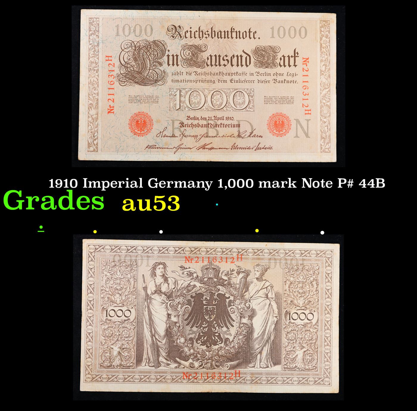 1910 Imperial Germany 1,000 mark Note P# 44B Grades Select AU