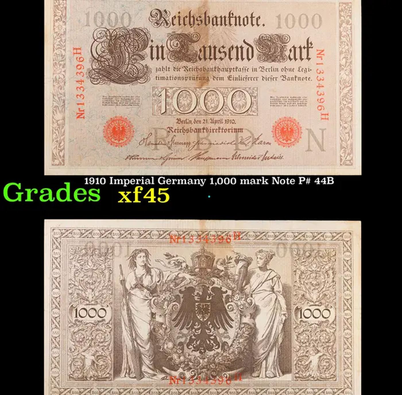 1910 Imperial Germany 1,000 mark Note P# 44B Grades xf+