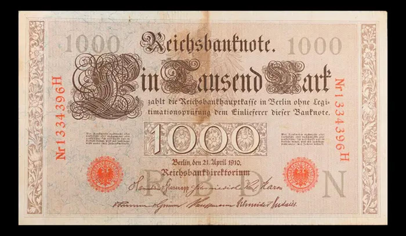 1910 Imperial Germany 1,000 mark Note P# 44B Grades xf+. 0 From 1871 to 1914 the German Mark was known as the "Goldmark", as it was on the gold standard. During WWI, like most nations, Germany removed the gold backing and ceased circulation of gold coins. The Goldmark was the culmination of years of effort put into unifying the currency of Germany.