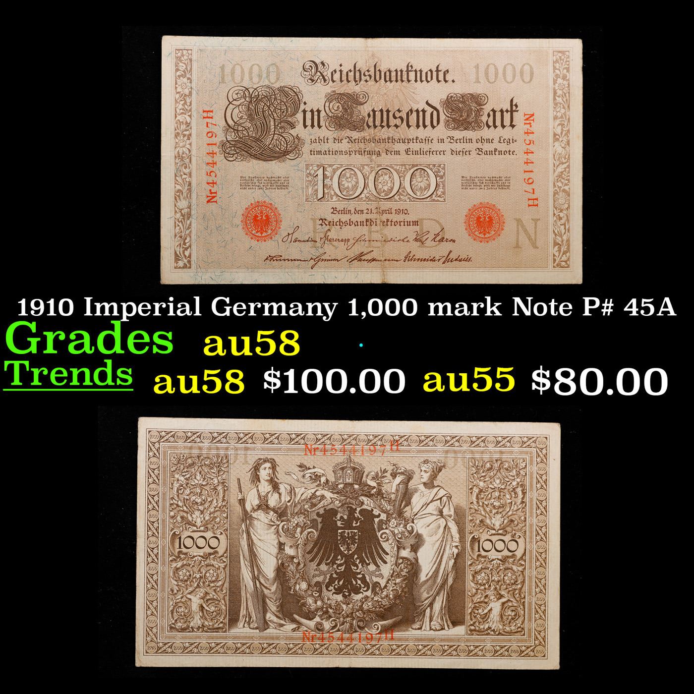 1910 Imperial Germany 1,000 mark Note P# 45A Grades Choice AU/BU Slider