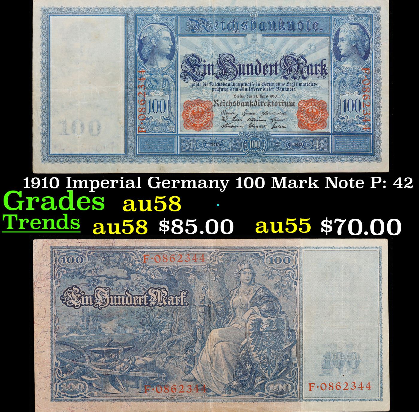 1910 Imperial Germany 100 Mark Note P: 42 Grades Choice AU/BU Slider.