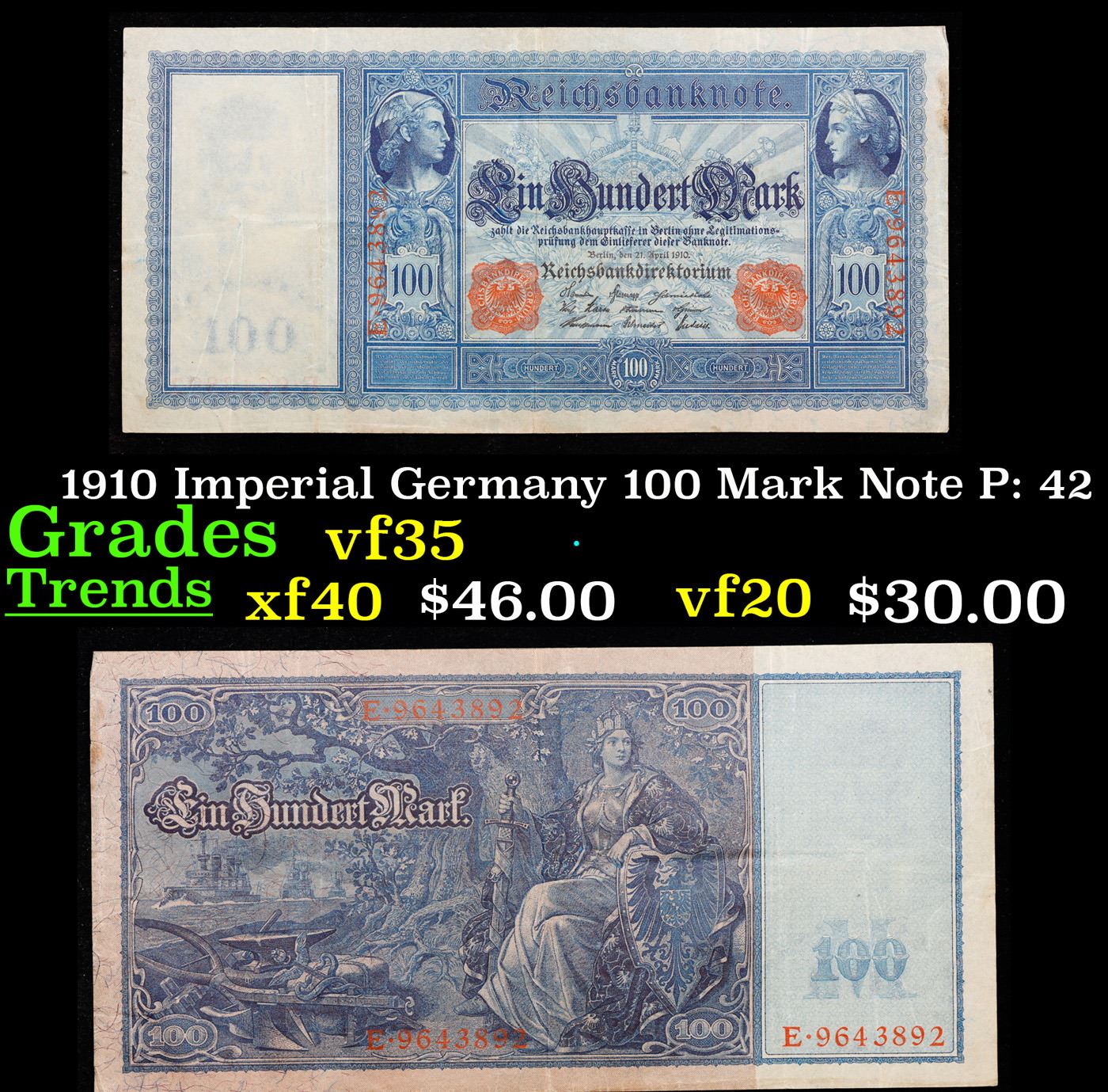 1910 Imperial Germany 100 Mark Note P: 42 Grades vf++.