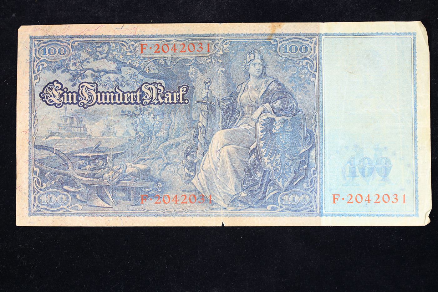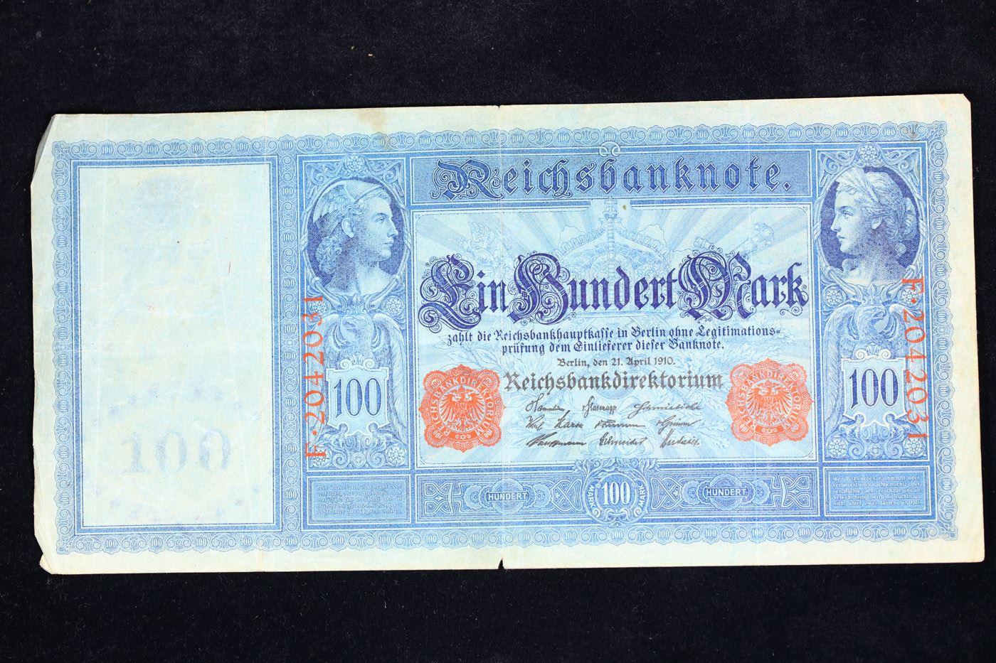 1910 Imperial Germany 100 Mark Note P# 42 Grades vf++. From 1871 to 1914 the German Mark was known as the "Goldmark", as it was on the gold standard. During WWI, like most nations, Germany removed the gold backing and ceased circulation of gold coins. The Goldmark was the culmination of years of effort put into unifying the currency of Germany.