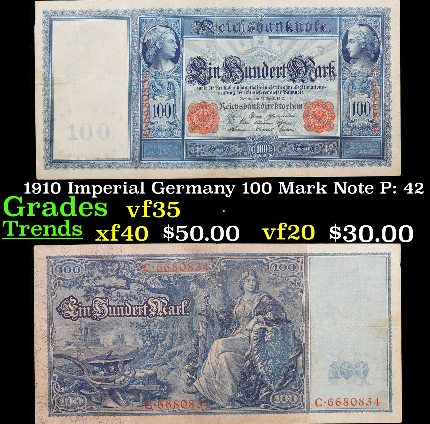 1910 Imperial Germany 100 Mark Note P: 42 Grades vf++.