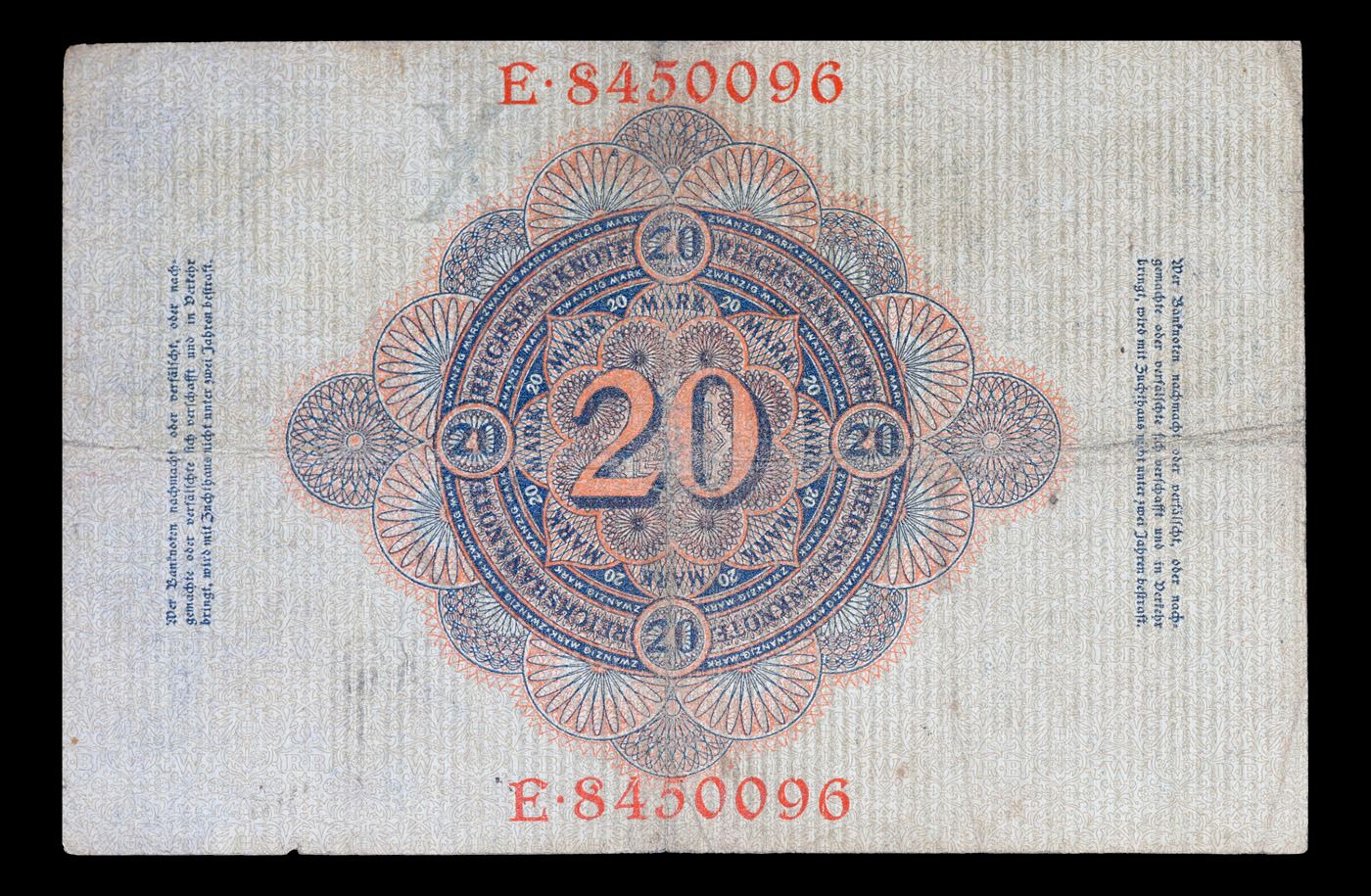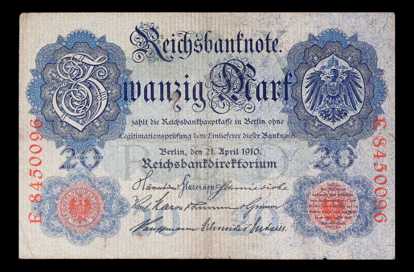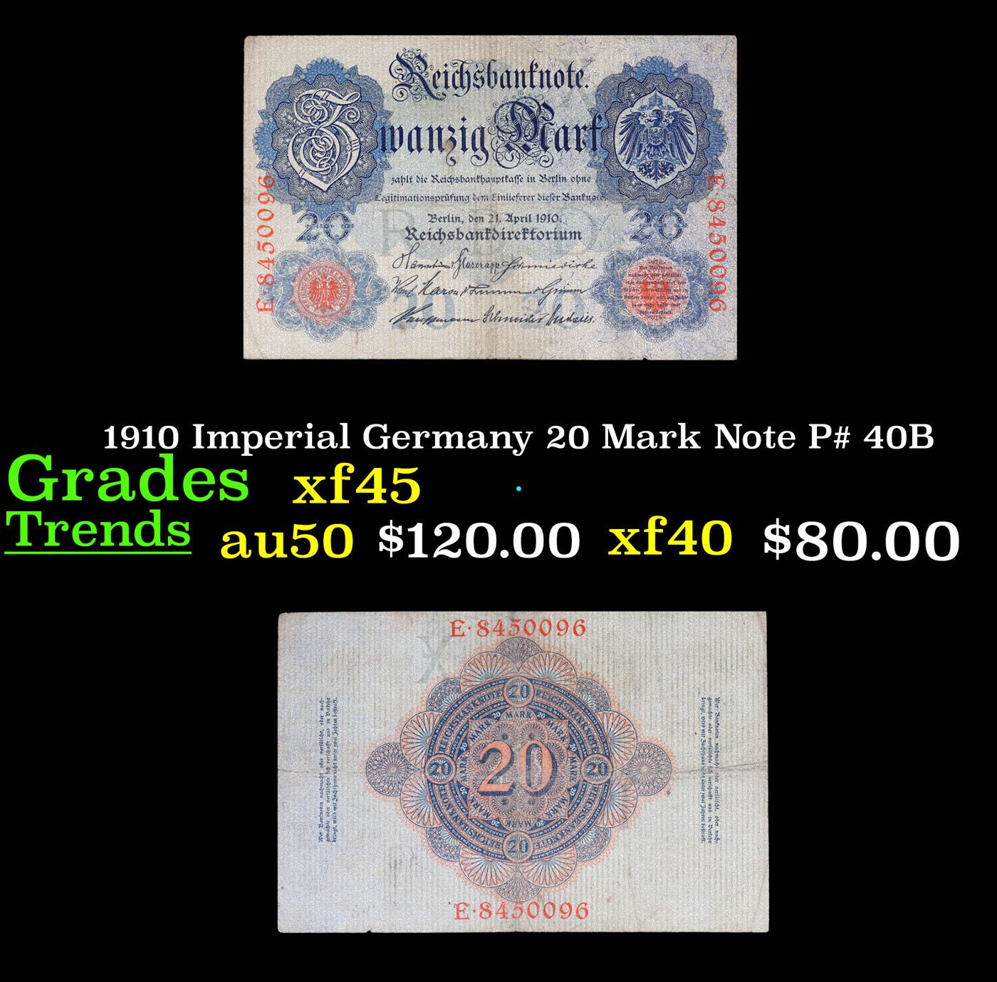 1910 Imperial Germany 20 Mark Note P# 40B Grades xf+.