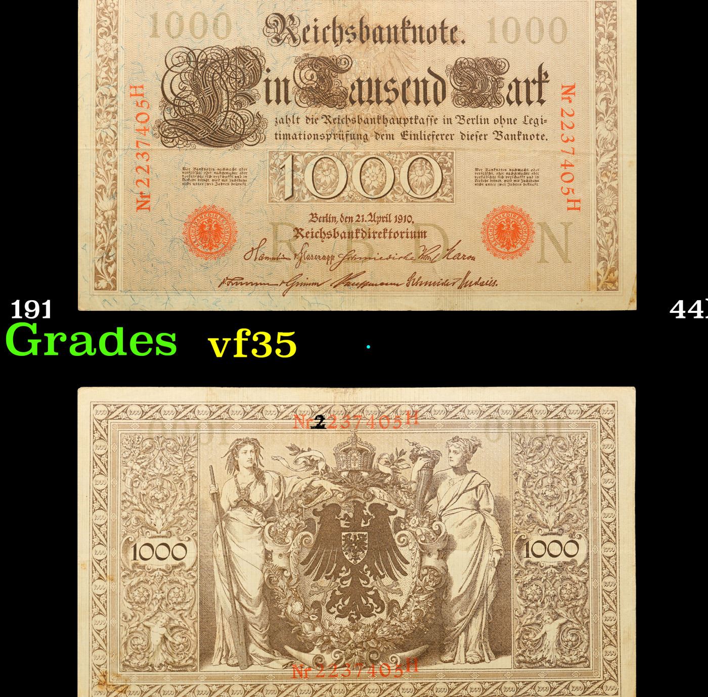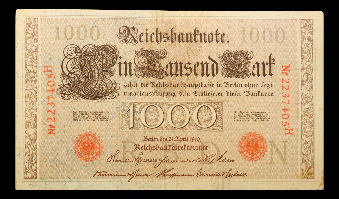 1910 Imperial Germnay 1,000 Mark Note P# 44B Grades vf++.