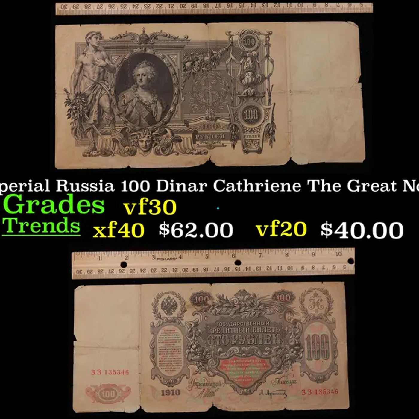 1910 Imperial Russia 100 Dinar Cathriene The Great Note P# 13B Grades vf++.