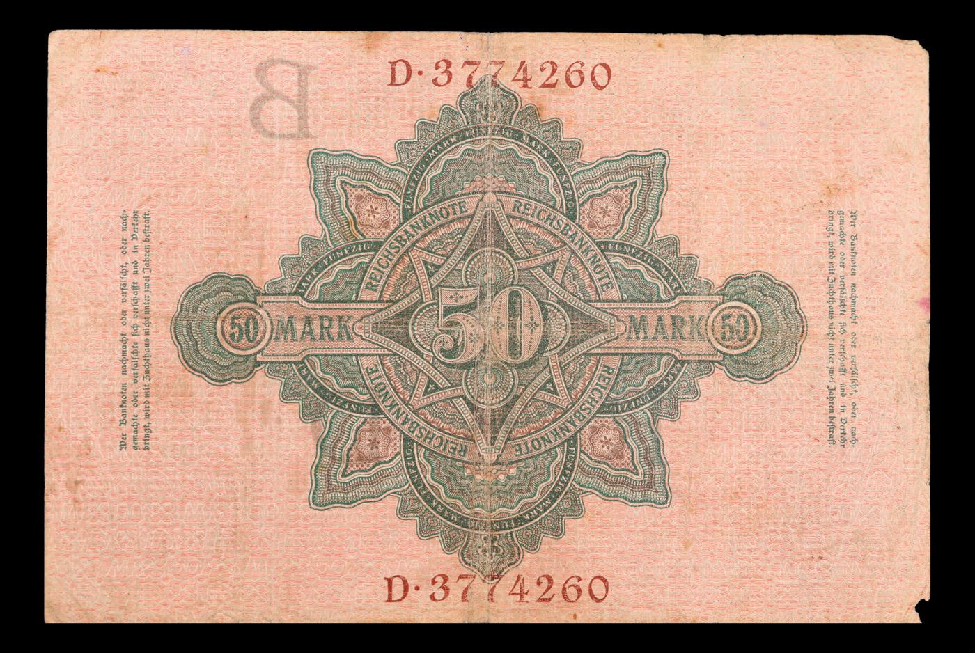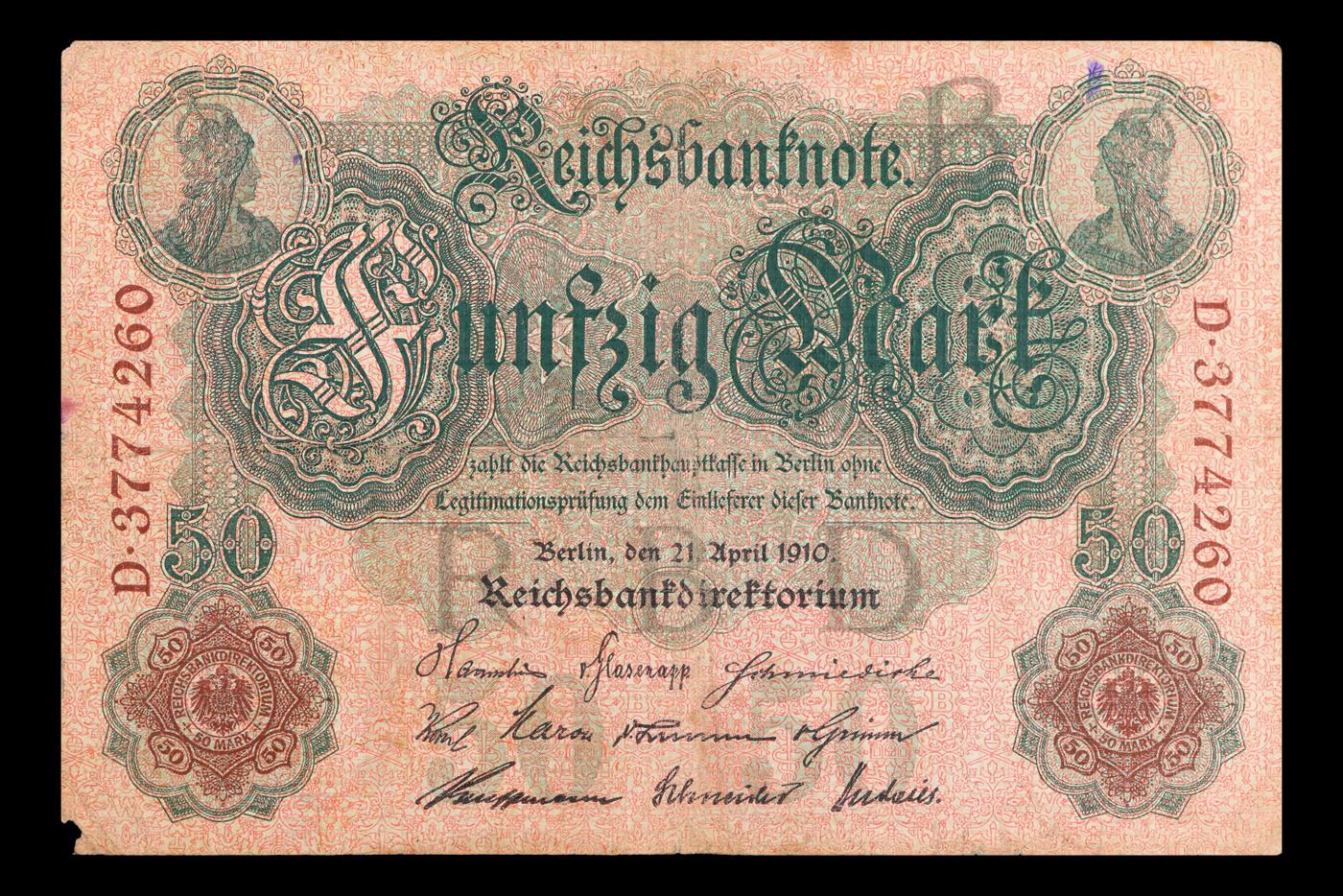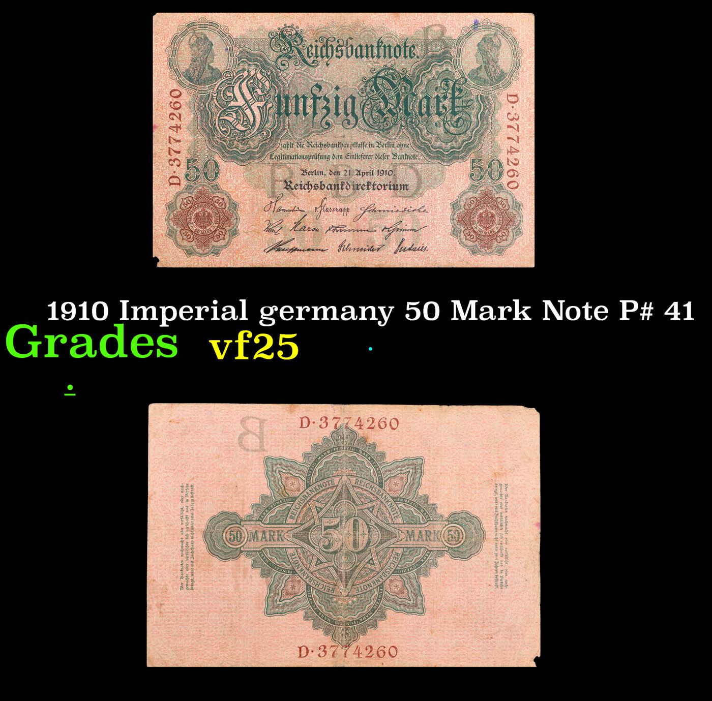 1910 Imperial germany 50 Mark Note P# 41 Grades vf+. From 1871 to 1914 the German Mark was known as the "Goldmark", as it was on the gold standard. During WWI, like most nations, Germany removed the gold backing and ceased circulation of gold coins. The Goldmark was the culmination of years of effort put into unifying the currency of Germany.