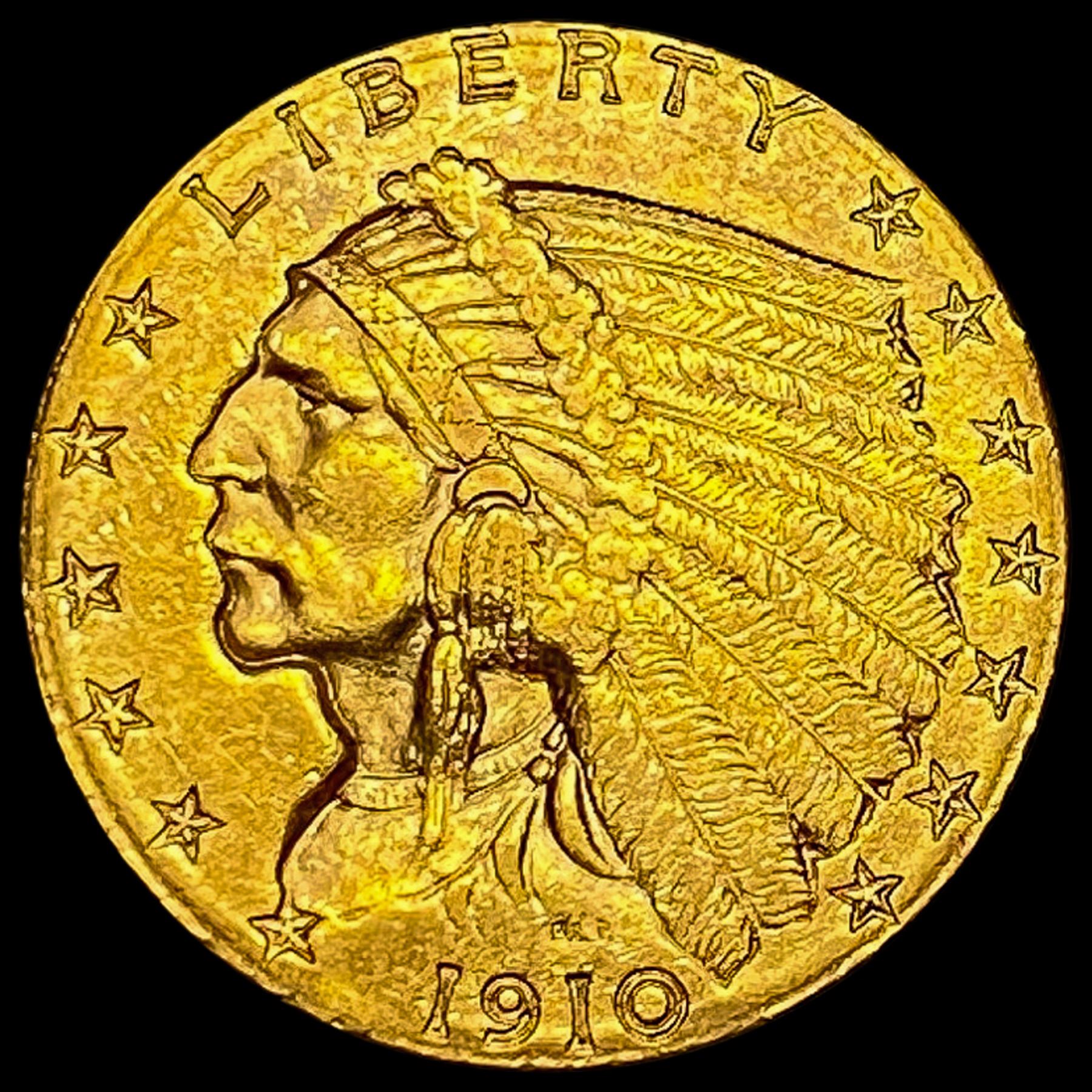 1910 Indian Head $2.50 Gold Quarter Eagl CLOSELY UNCIRCULATED