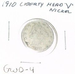 1910 LIBERTY HEAD "V" NICKEL *GOOD-4 GRADE*!! ***Coin & Currency Grades, Conditions and Values are not Northern Colorado Estate Liquidators Responsibilty. Grades, Condition and Values are determined by Consigner(s) & Buyers ONLY***
