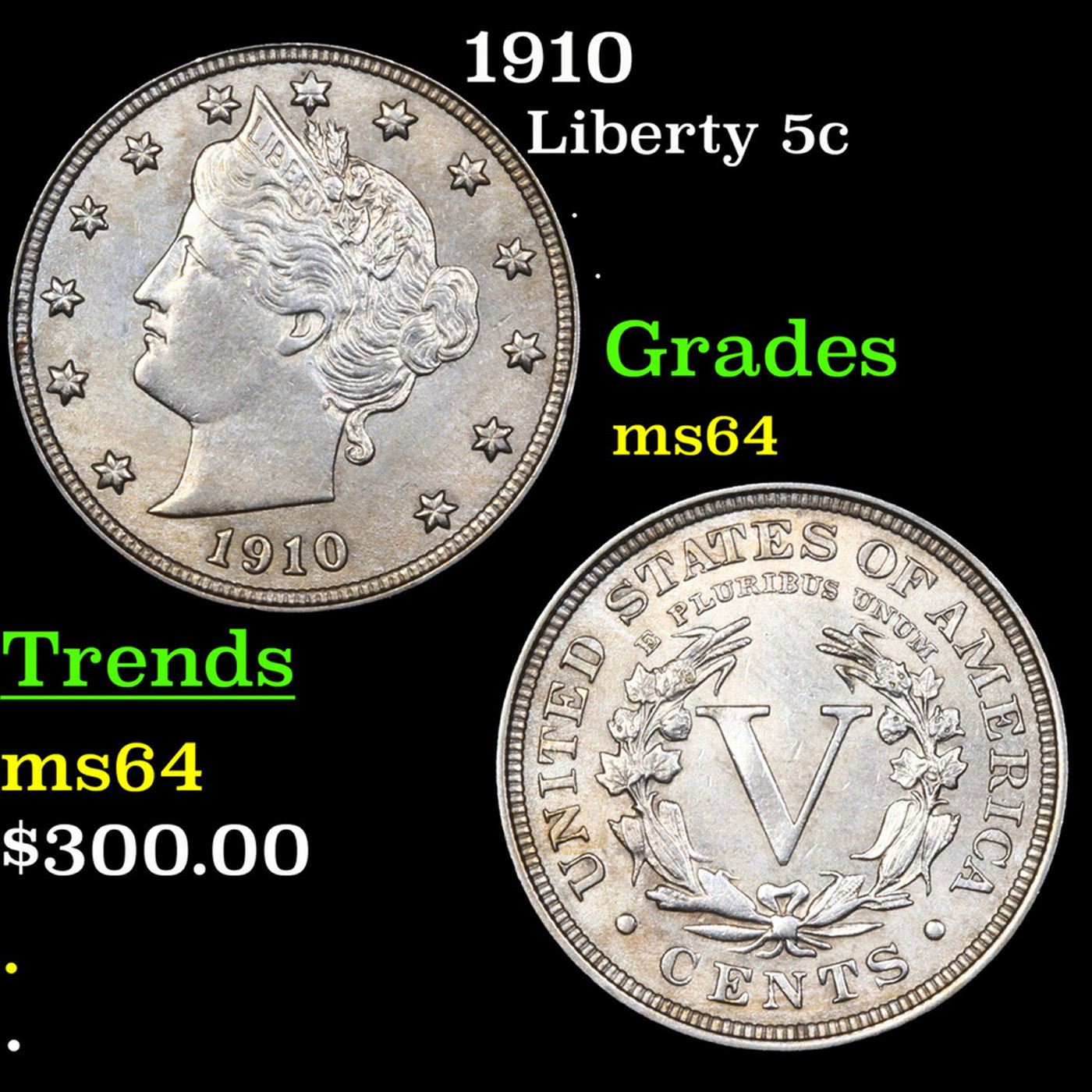 1910 Liberty Nickel 5c Grades Choice Unc.