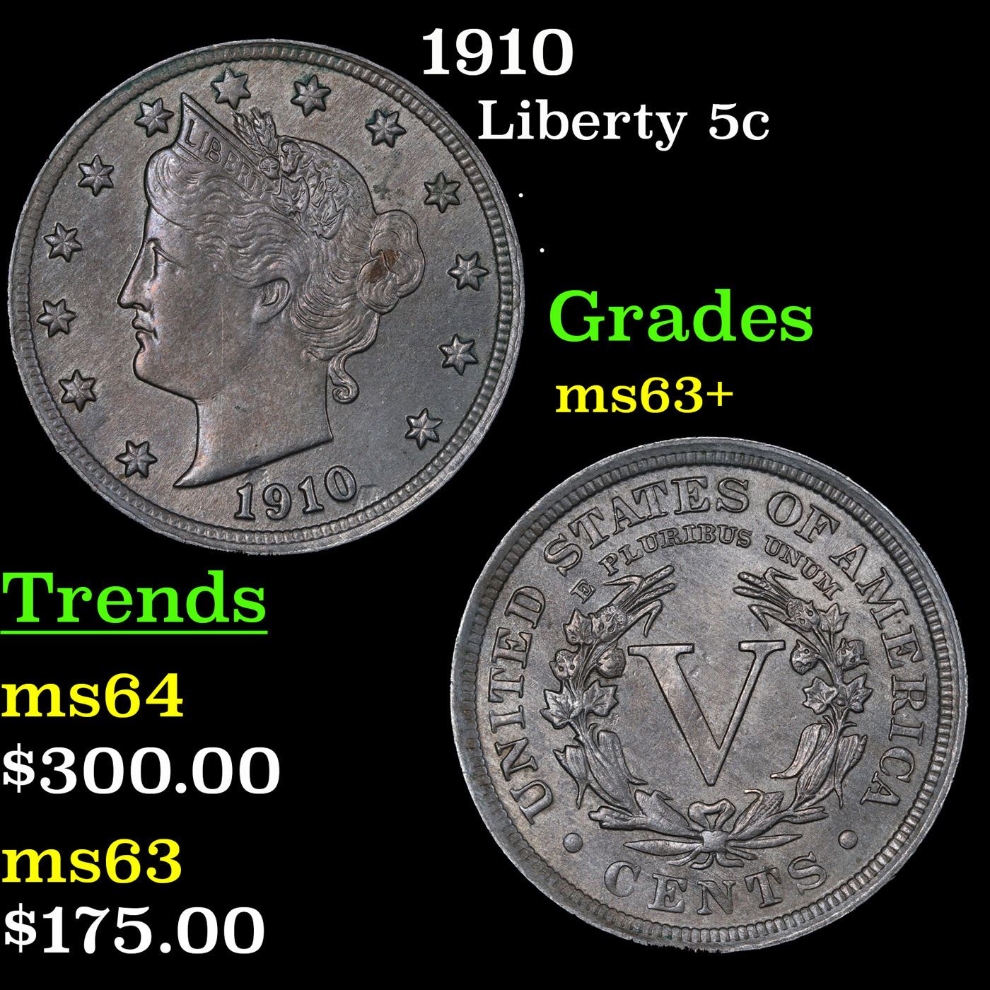 1910 Liberty Nickel 5c Grades Select+ Unc.