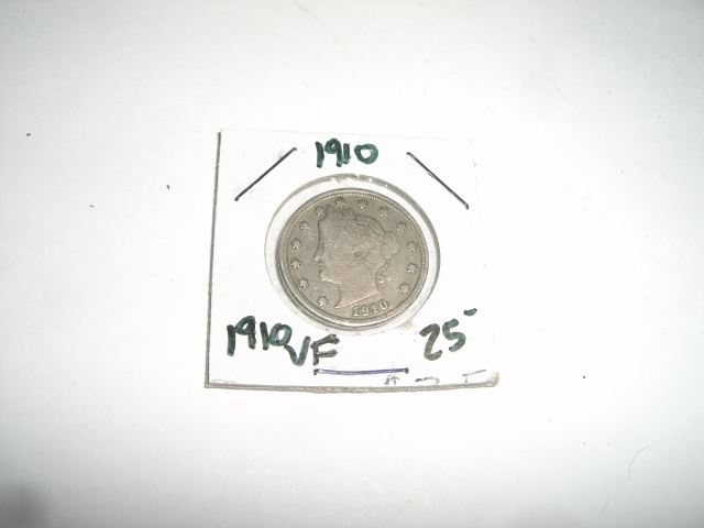 1910 Liberty "V" Nickel RFD Book Value $25+ *Nice Early VERY FINE Grade Nickel* **Coin, Currency & All Items Listed in this auction - Grades, Conditions and Values are not Safe Deposit Coins LLC Responsibilty. Grades, Condition and Values are determined by Consigner(s) & Buyers