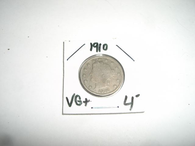 1910 Liberty "V" Nickel RFD Book Value $4+ *Nice Early VERY GOOD Grade Nickel* **Coin, Currency & All Items Listed in this auction - Grades, Conditions and Values are not Safe Deposit Coins LLC Responsibilty. Grades, Condition and Values are determined by Consigner(s) & Buyers