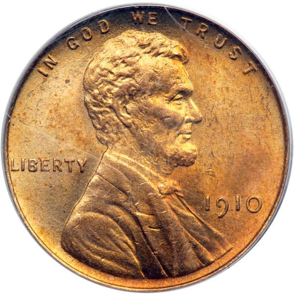 1910 Lincoln Cent. PCGS graded MS-64 Red. Well struck with full bright golden mint red color (PCGS # 2437) .