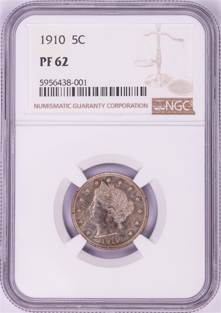 One 1910 Proof Liberty V Nickel Coin NGC PF62. NGC Certified.