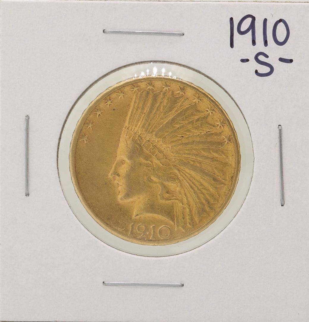 One 1910-S $10 Indian Head Eagle Gold Coin.