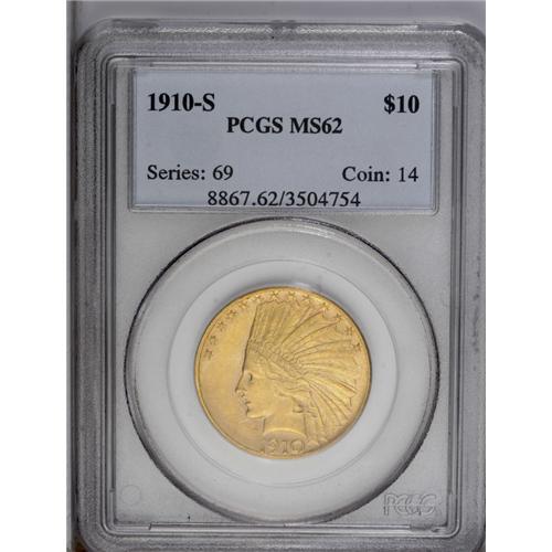 1910-S $10 MS62 PCGS. Despite the mintage, this date i