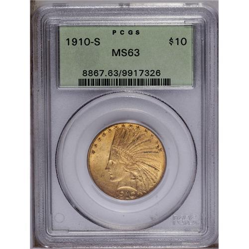 1910-S $10 MS63 PCGS. Despite its high mintage (811,00 1910-S[$10] MS63 PCGS.