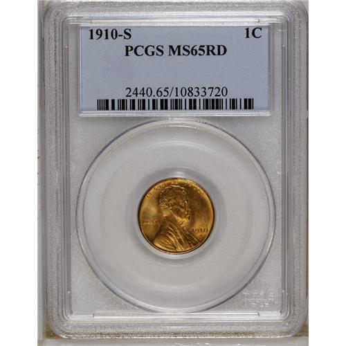 <B>1910-S 1C MS65 Red PCGS.</B></I> Beautiful straw-gold surfaces reveal hints of sky-blue undertones and boldly impressed design elements, and close examination shows no mentionable marks or unsightly spots. A truly gorgeous Gem that is sure to delight the Lincoln cent specialist.<BR><BR><b>Shipping:</b> Coin/Currency (<a target="_blank" href="http://www.heritageauctions.com/common/shipping.php">view shipping information</a>)