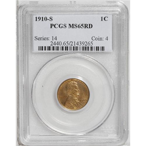 <B>1910-S<1C> MS65 Red PCGS.</B></I> The surface coloring is lustrous copper-gold, with light tan on a small portion of the reverse. This is one of the more popular and difficult to find coins in the series.