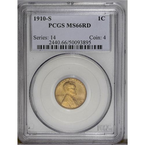 <B>1910-S<1C> MS66 Red PCGS.</B></I> Blazing mint Red throughout and highly lustrous. The surfaces are excellent for the grade, and lack all but minute signs of carbon or contact. Saved in sufficient numbers that this grade is obtainable, but finer examples are prohibitive if they can be located. A worthy example of this popular and scarce date. Population: 55 in 66, 2 finer (3/06).<BR><I>From The Kendall Marie #4 All-Time Finest PCGS Registry of Lincoln Cents with Varieties, Circulation Strikes, 1909-1958.</B></I> <BR><BR><B>Important notice:</B> Heritage usually auctions material at the rate of 200-250 lots per hour. On some occasions eBay Live bid software or the Internet may not be able to keep up with the pace of the auction. We recommend placing a realistic absentee bid now as insurance to avoid disappointment. Occasionally the auctioneer may eliminate or reject an eBay Live bid, and the auctioneer may also reopen a lot after the close of the eBay live bidding (usually because we missed an audience bid), and may reject your bid even if it shows you as the winning bidder. By bidding via eBay Live, you agree that Heritage may award the lot to another bidder at its sole discretion under the circumstances described above or any other reasonable circumstances. Since eBay bids are not shown to us until we open the lot on the floor, we treat those bids just like floor bids. In most cases the floor responds before the eBay bid is presented to us, due to Internet lag time, so for consistency we have made it a policy that floor bids are always considered first over tie eBay live bids. Also please note that all Heritage lots purchased through eBay Live carry a 20% Buyer's Premium. Please make sure you read the Terms and Conditions before you bid. This lot is being auctioned in conjunction with a live floor auction by Heritage Galleries & Auctioneers. All final auction and invoice information will be supplied by Heritage Galleries & Auctioneers, and all other information should be considered preliminary. Lot:471 <BR><BR><B>Winning Notification and Billing:</B> After the FINAL session in this auction is complete, Heritage will send e-mail and snail mail invoices. This process normally takes several days. All final auction and invoice information will be supplied by Heritage Galleries & Auctioneers, and all other information should be considered preliminary. <BR><BR>This auction will be conducted on a live auction floor and over the Internet through eBay Live. If you choose to place an absentee bid, please take a moment to <font color='#0000ff'><u><a href='http://pages.ebay.com/liveauctions/help/before/laabsentee.html'>learn how eBay Live absentee bidding works</a></u></font><font color='#000000'>