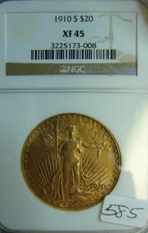 1910-S $20.00 St. Gaudens Gold Coin NGC XF 45