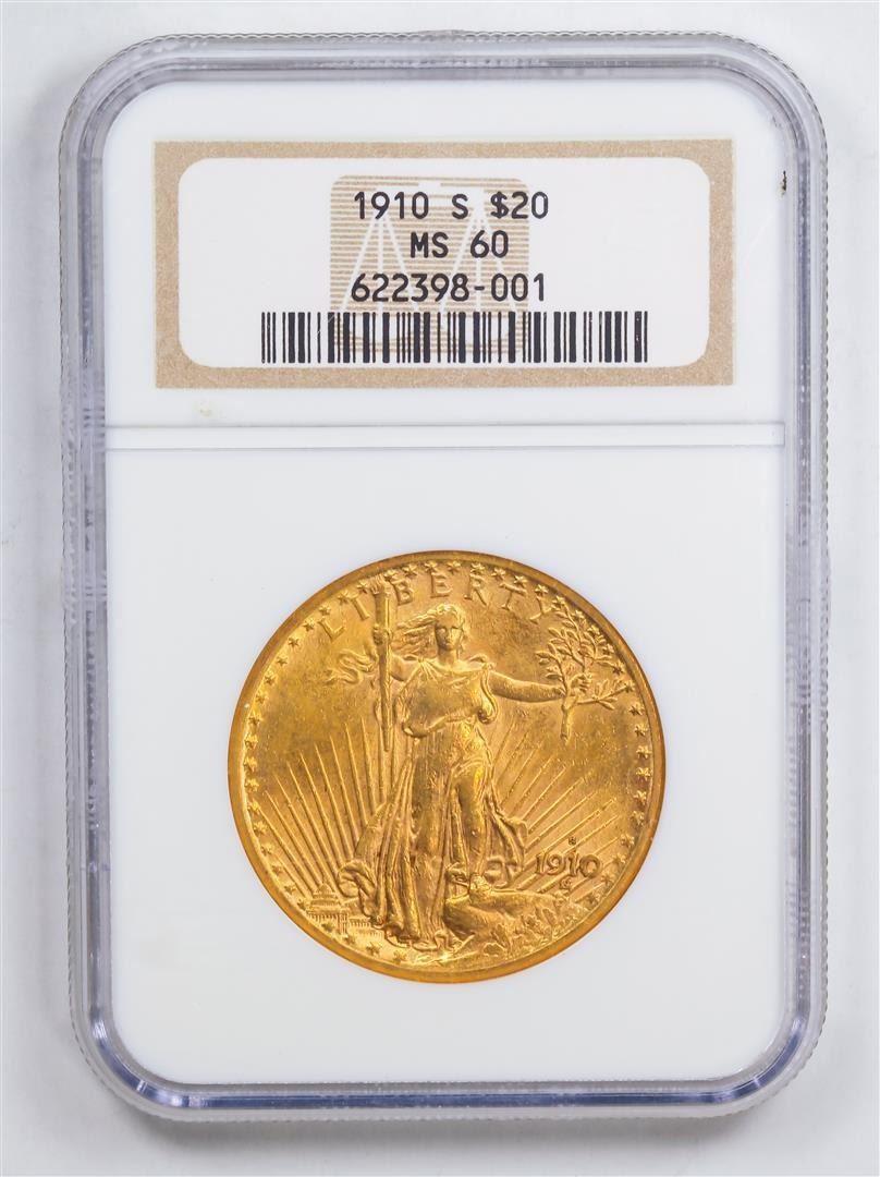 One 1910-S $20 Double Eagle Gold Coin NGC MS60.