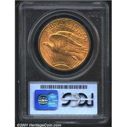 1910-S $20 MS62 PCGS. Modestly abraded and lustrous with a good strike. Important notice: We expect to be auctioning lots at the rate of 200-250 per hour. Sometimes eBay Premier live bid software cannot keep up with that pace, so we strongly recommend that you place a realistic proxy bid now as insurance to avoid disappointment. Also please note that all Heritage/CAA lots purchased through eBay Premier carry a 20% Buyer's Premium.