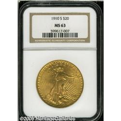 <B>1910-S $20 MS63 NGC.</B></I> Lustrous and bright with a good strike and normal contact marks for the grade.<BR><I>From The Richard J. Chouinard Collection of United States Coins, Part Three.</B></I>