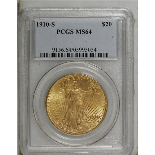 1910-S $20 MS64 PCGS. Boldly struck with satiny luster
