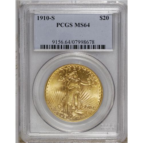 1910-S $20 MS64 PCGS. Highly lustrous and boldly impre