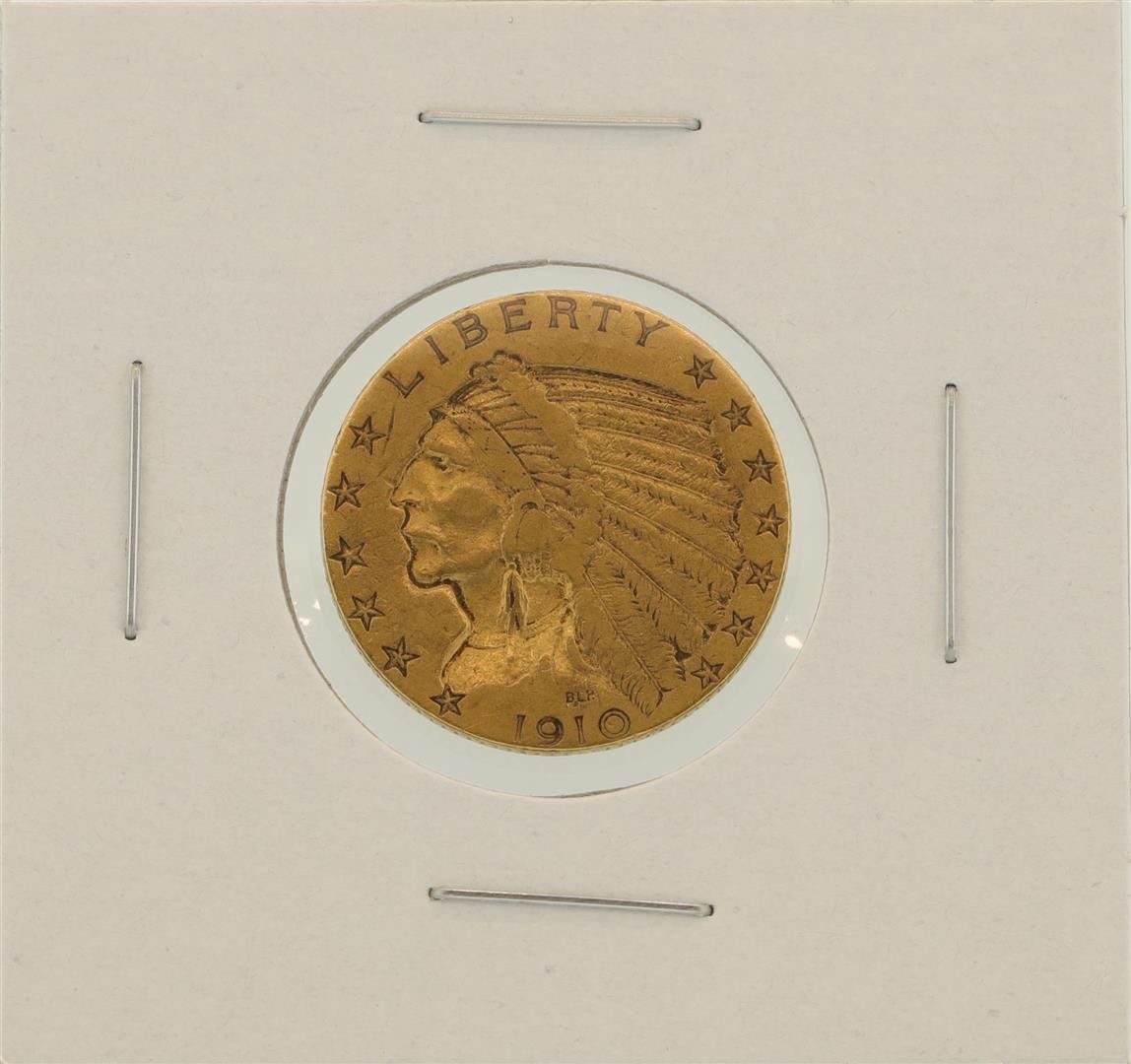 One 1910-S $5 Indian Head Half Eagle Gold Coin.