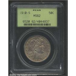 1910-S 50C MS62 PCGS. The surfaces are uncommonly free of distracting bagmarks for the MS62 grade le