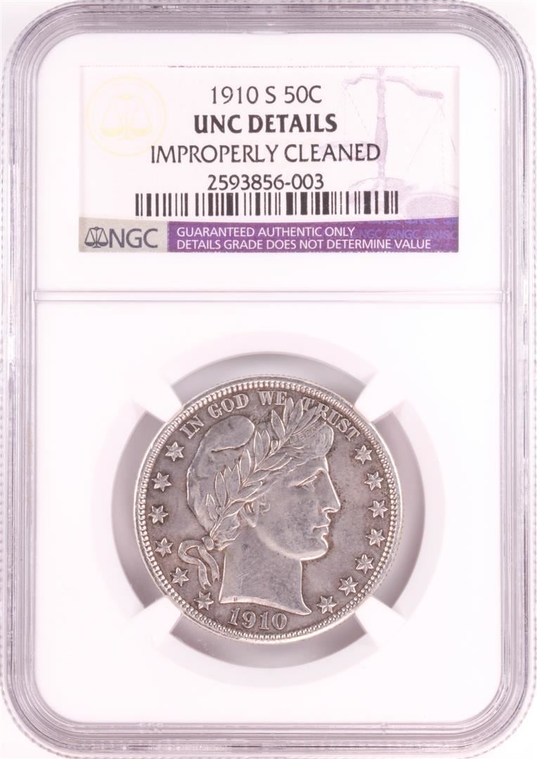 One 1910-S Barber Half Dollar NGC Coin UNC Details. NGC Certified.