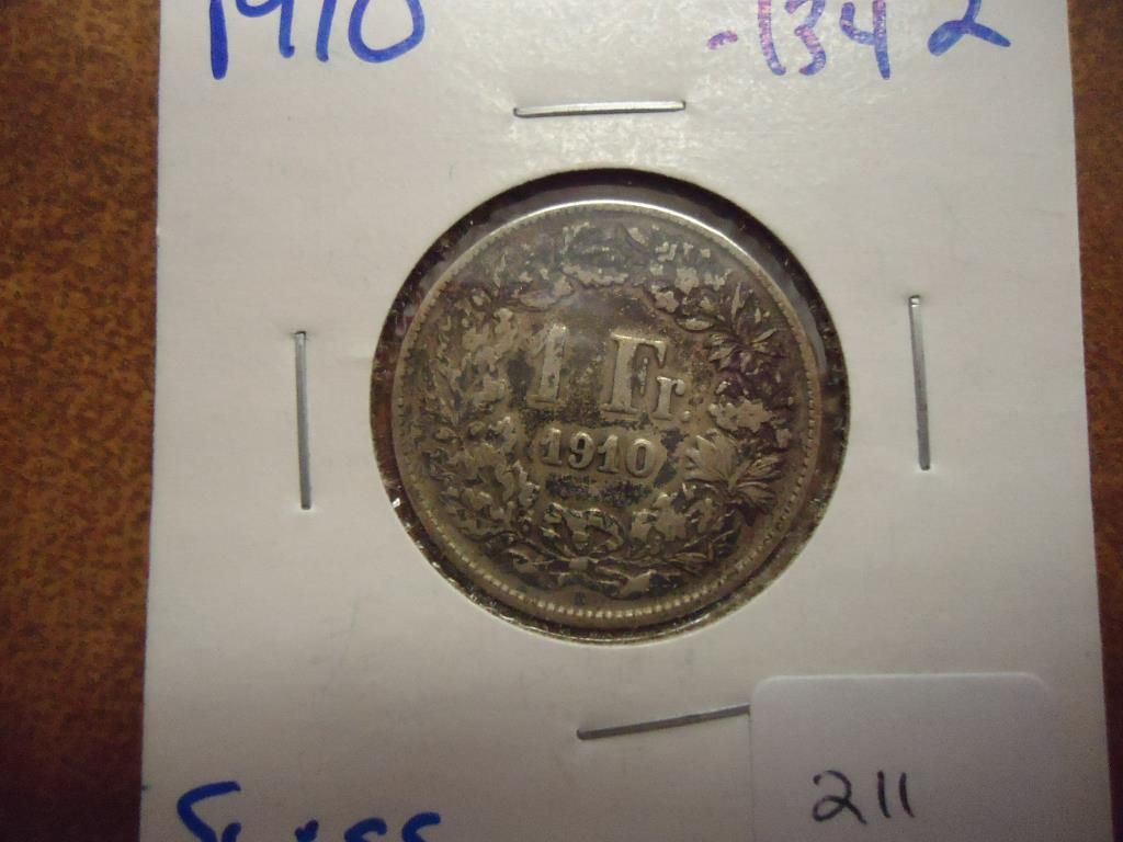 1910 SWITZERLAND SILVER FRANC .1342 OZ. ASW