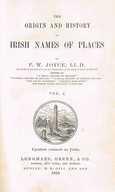 Quarter calf, Gill Dublin.Volume 1 and 2 of this valuable study that relates not just to place names but also wildlife, history, surnames etc. Boards with gilt embossed stamp of St. Patrick's College, Maynooth. (2 items)